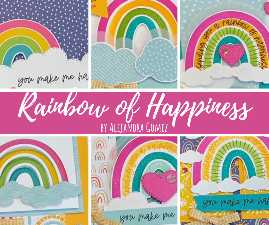 The Rainbow of Happiness stamp set works beautifully with the Sunshine & Rainbows designer series paper from the Saleabrarion offering! And as you will see in this class these two products create the most cheerful cards.
